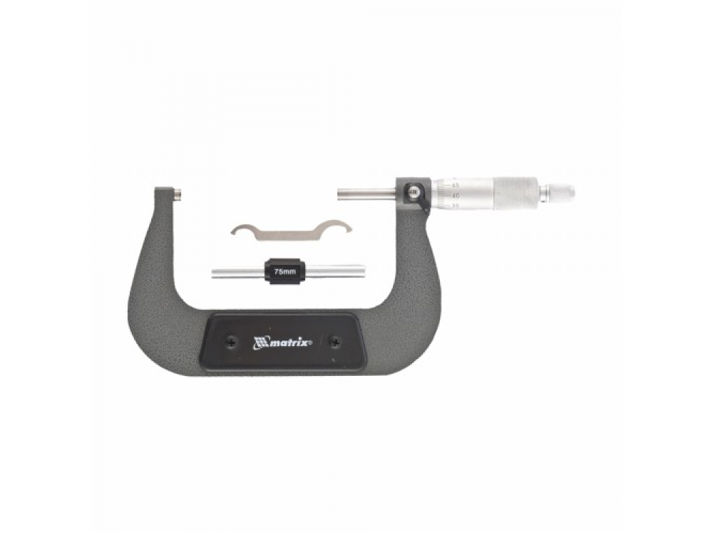 Микрометр изготовлен из инструментальной стали. Имеет форму скобы. Основным рабочим элементом является микрометрическая головка. Упакован в пластмассовый кейс. Предназначен для особо точных измерений.