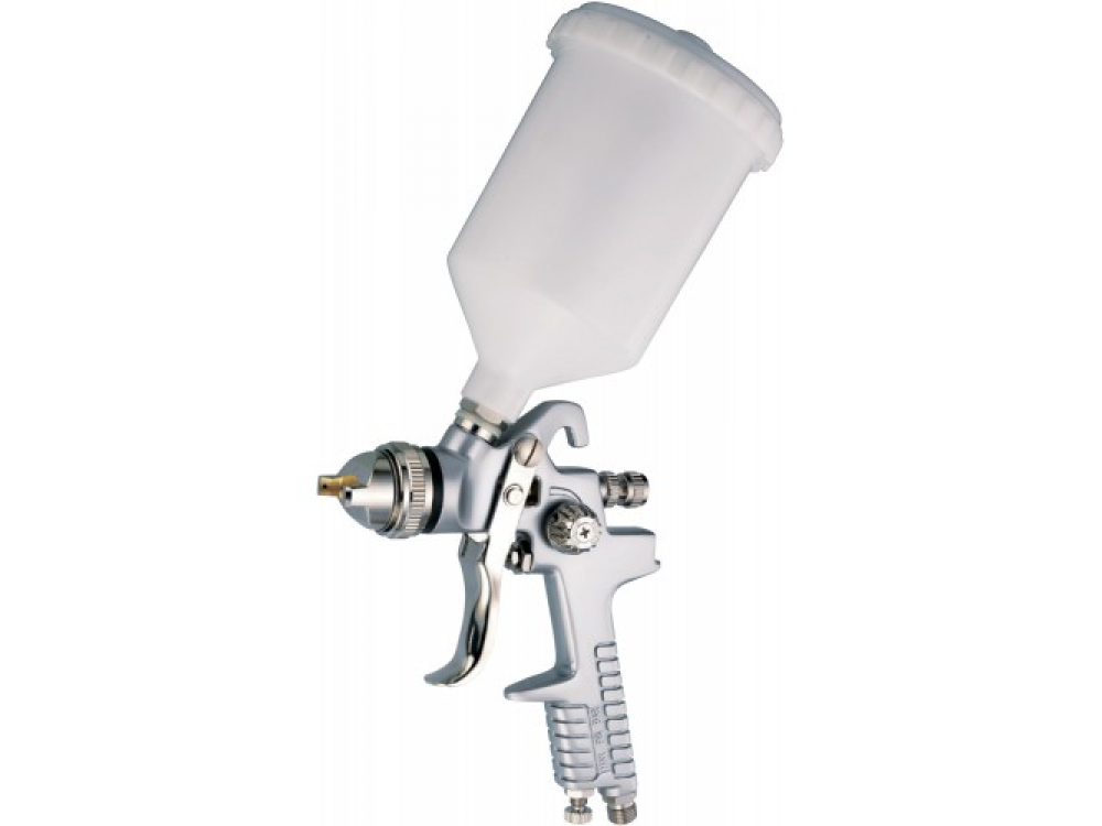 Покрасочный пистолет конвенционального типа и гравитационной подачей ЛКМ применяется для производства малярных работ со всеми типами лакокрасочных материалов*.