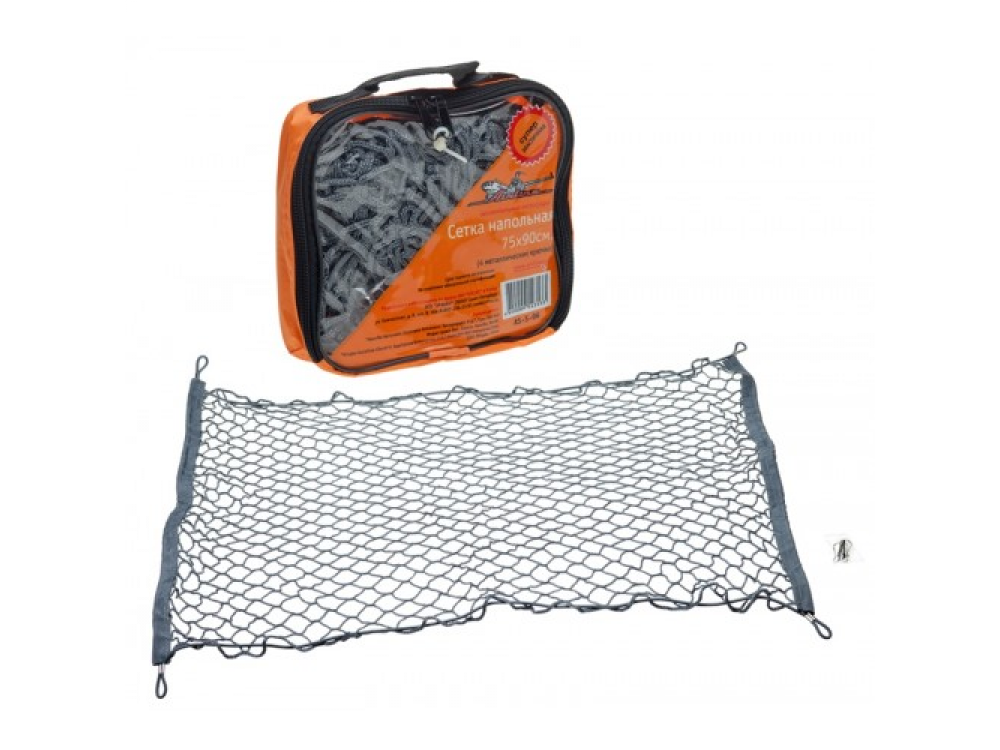 Напольная сетка с размерными показателями 75х90 см – самая крупная сетка из серии фиксации грузов от AIRLINE. Она идеально подойдет для закрепления багажа большого размера. Принцип работы сетки прост - с помощью 4 металлических крючков изделие устанавливается в багажное отделение автомобиля и плотно прижимает к полу машины перевозимый груз. Это позволяет не только обезопасить багаж от повреждений, но и избавиться от лишнего шума от движения груза во время езды.