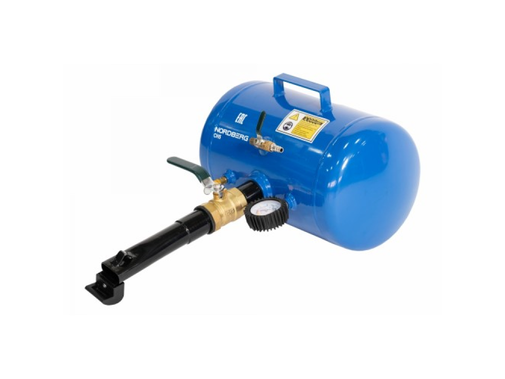 Бустер Nordberg CH-5 Предназначен для упрощения посадки бескамерных шин на диск. Также применяется для быстрой подкачки бескамерных шин. Эксплуатация: Накачайте ресивер бустера до необходимого давления (максимум 12 бар). Присоедините шланг подкачки от Вашего компрессора к вентилю колеса и подайте давление. Приставьте сопло бустера к щели между бортом шины и ободом диска, и резко откройте шаровой вентиль. Ударное давление прижимает края покрышки к борту диска. Характеристики: Объем ресивера 19 л. Давление воздуха 7-12 бар. Каждый ресивер прошел испытания на герметичность. Оснащен предохранительным клапаном, манометром, быстросъемным переходником европейского типа "папа" Габариты упаковки: 460х400х300 мм