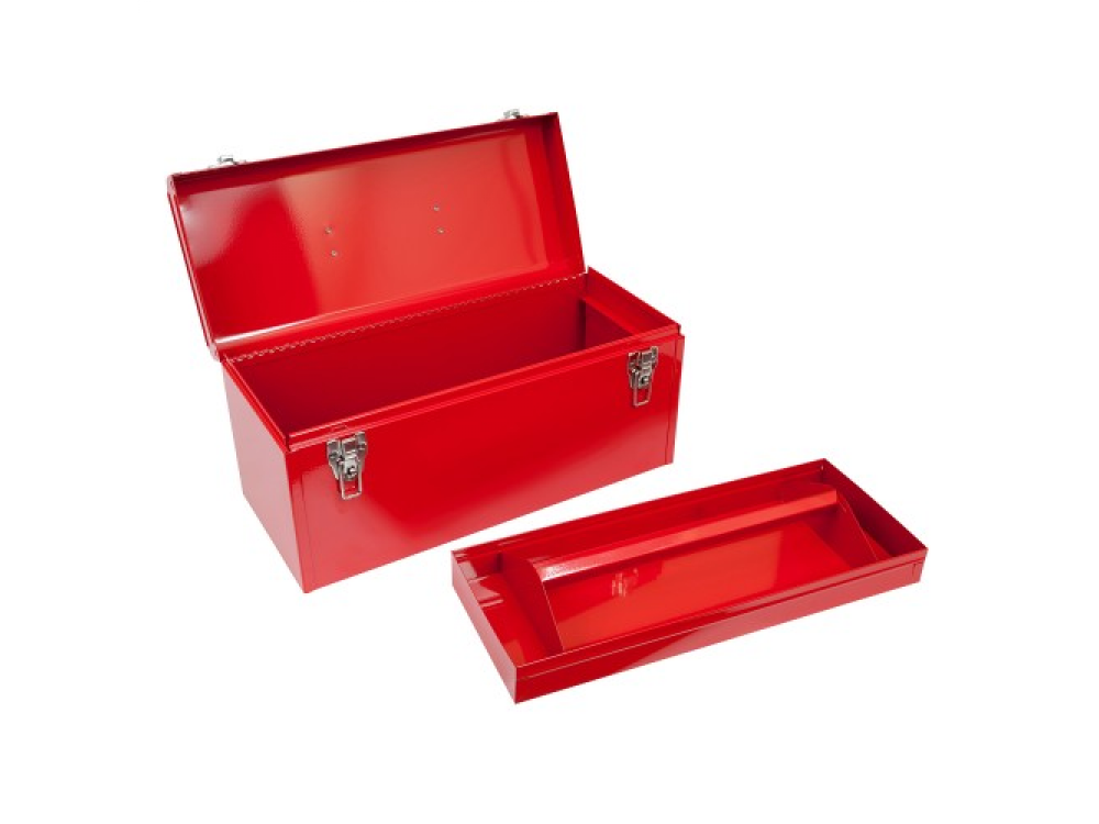 Ящик инструментальный, красный 512-01510R служит для организации рабочего места в любом производственном помещении, на станциях технического обслуживания или авторемонтных мастерских, хранение инструмента, мобильность. Технические характеристики: - Тип ящика: переносной с крышкой - Дополнительный выносной лоток: есть - Замок: 2 шт., металлический, тип фиксатора CLIP-LOCK - Материал: сталь - Покрытие: порошковая окраска - Цвет: красный - Габариты: 510 х 218 х 240 мм - Вес: 5 кг